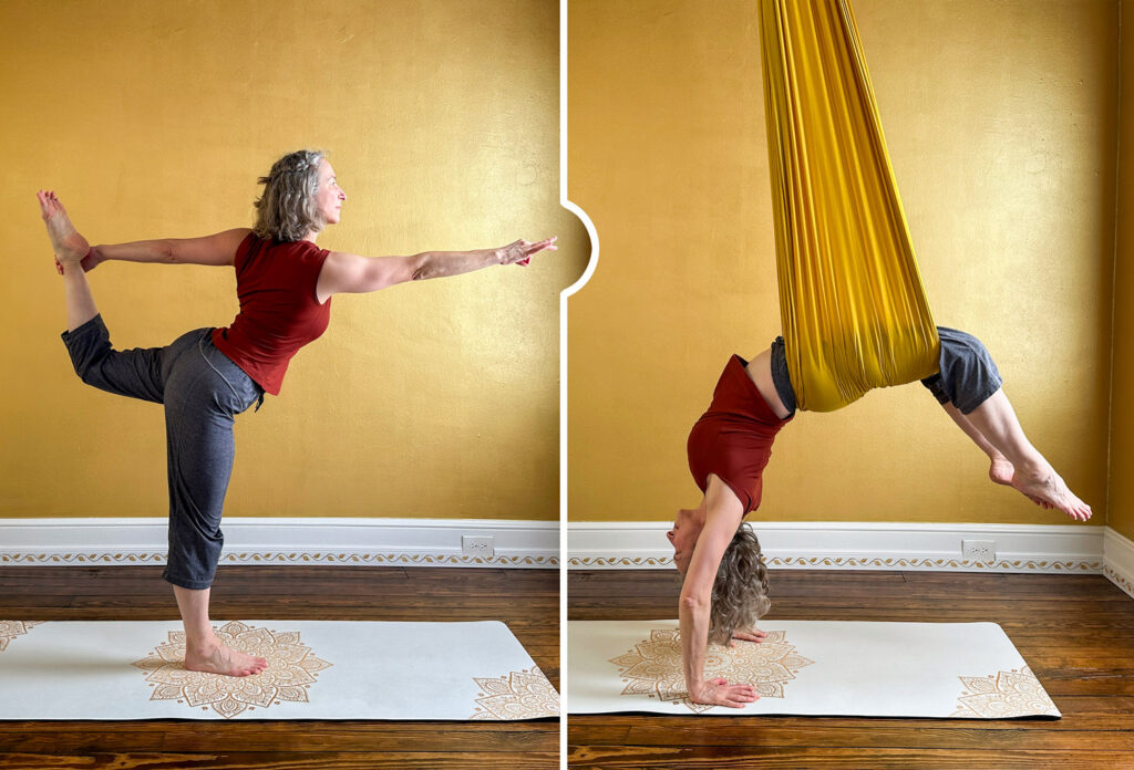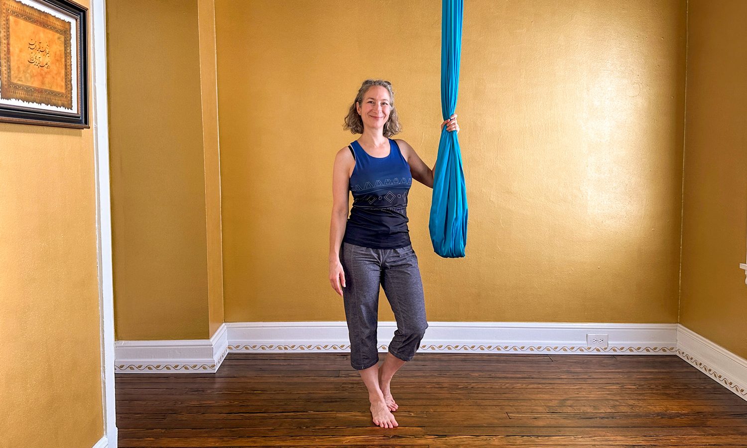 Michelle Dortignac has practiced yoga since 1991 and taught since 1998. She’s a certified instructor, founder of Unnata® Aerial Yoga, and longtime student of Sri Dharma Mittra and Alan Finger.