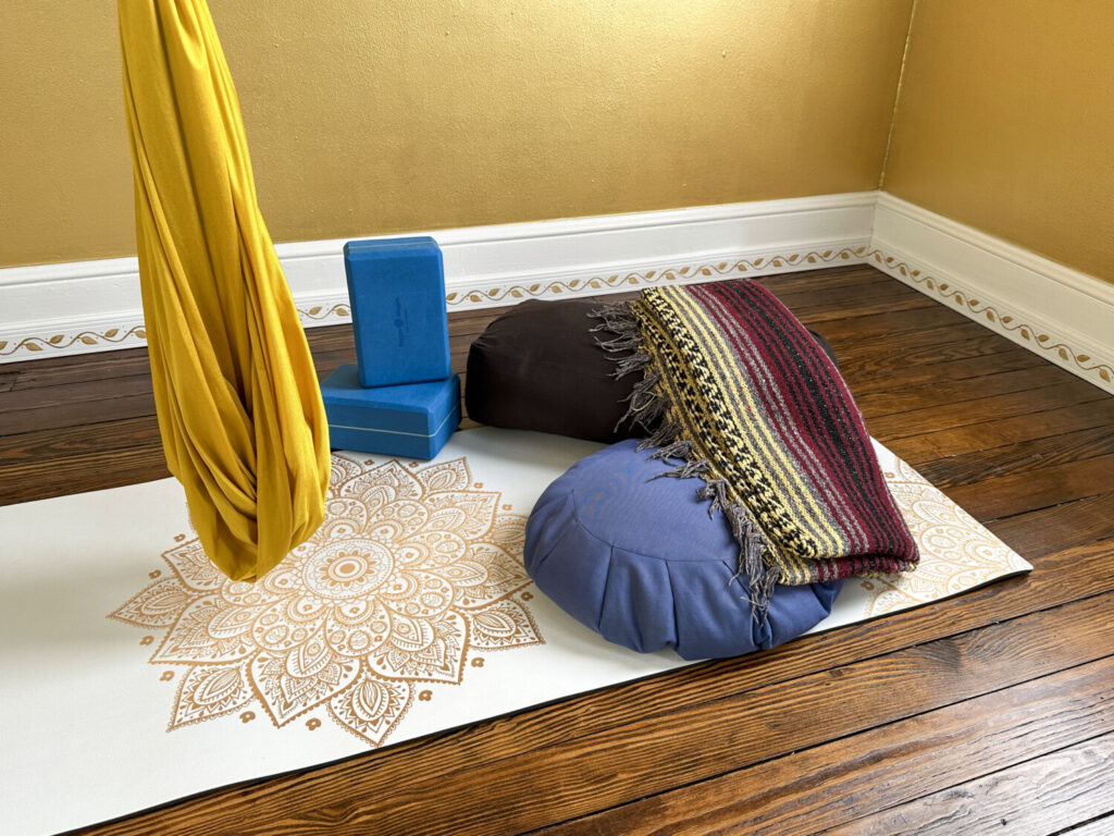 Small-group Yoga classes with Michelle Dortignac, a certified teacher with decades of experience — taught from her cozy in-home studio in Lancaster, PA.